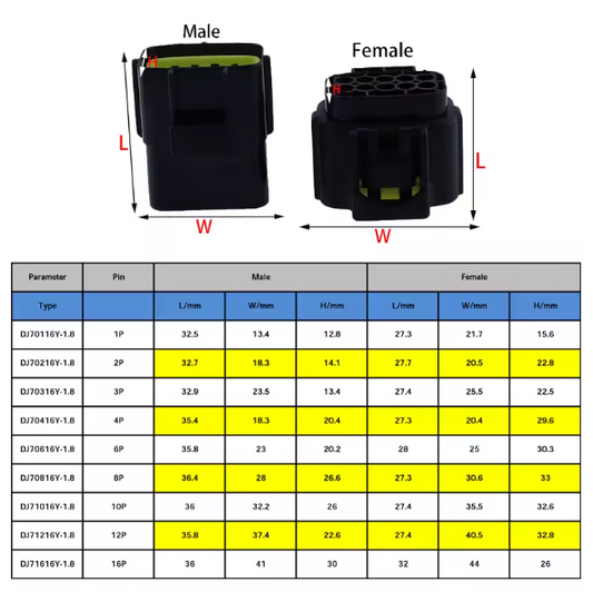 Universal Denso style connectors from single pin up to 16 pin configuration.
